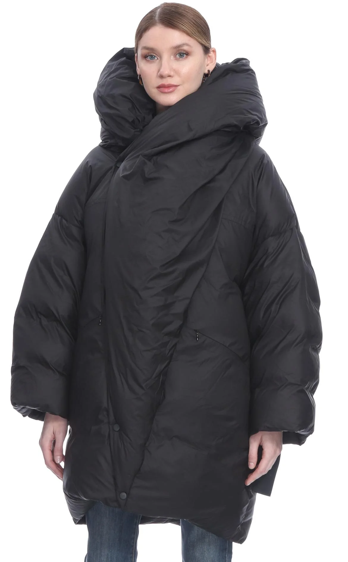 3. Siyah Uzun Kollu Kapüşonlu Yakalı Mont