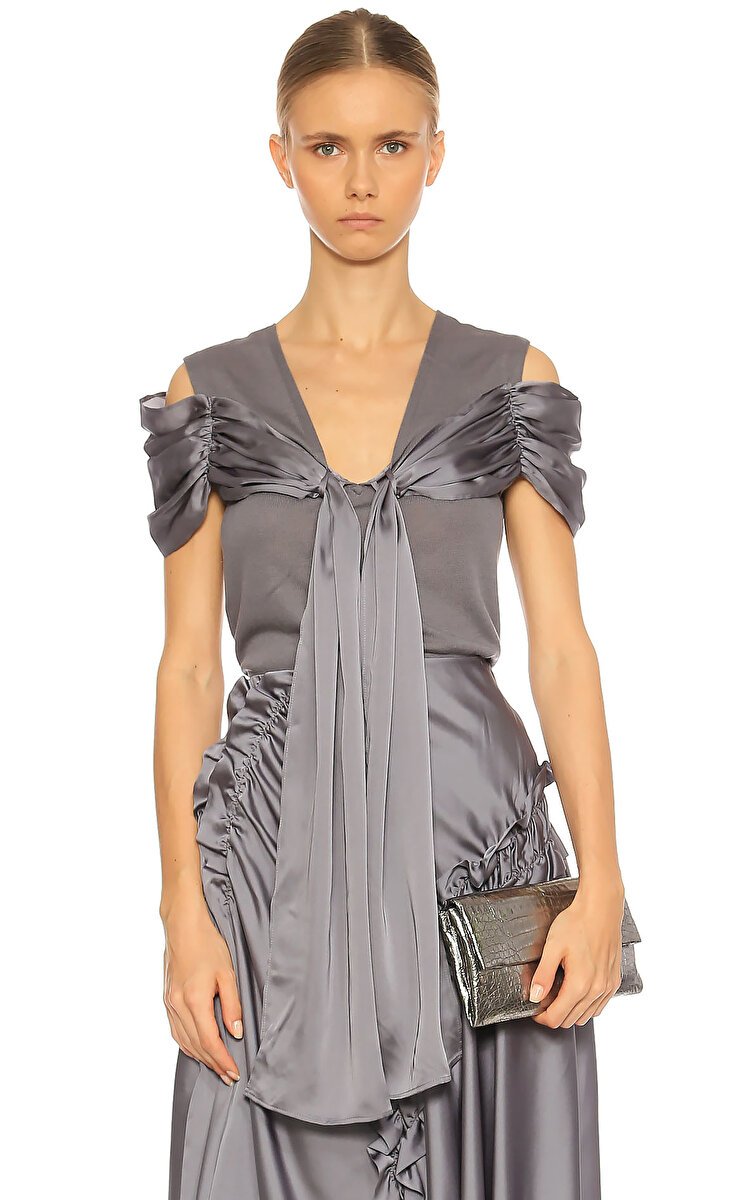 Geniş yaka, kolsuz, sırtı saten bağlamalı kuşak detaylı, gri Adeam bluz