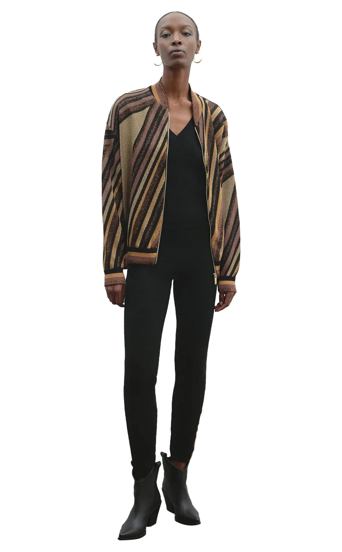 3. Kahverengi Çizgili Uzun Kollu Pamuklu Ceket