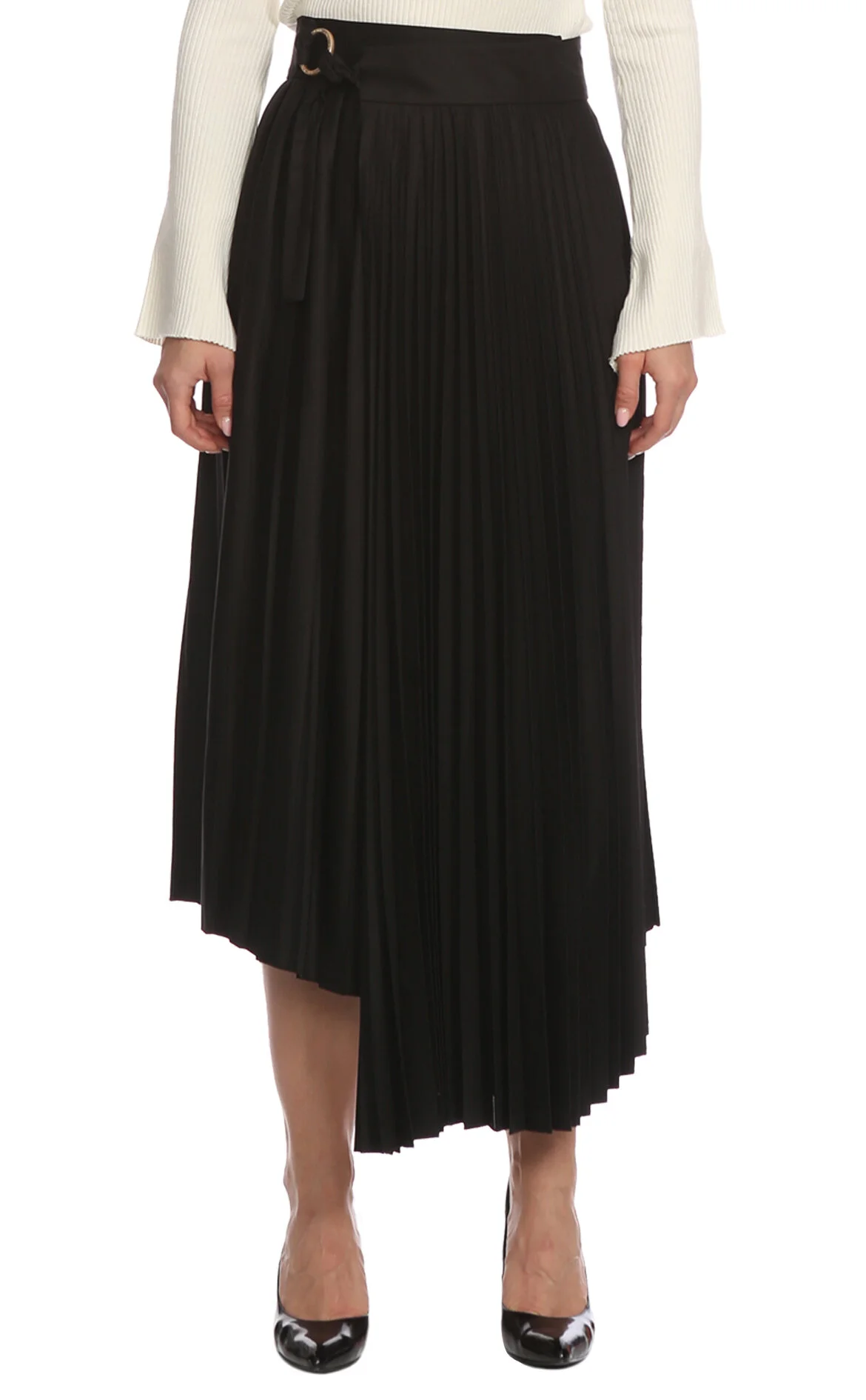 3. Siyah Piliseli Asimetrik Kesim Normal Bel Midi Etek