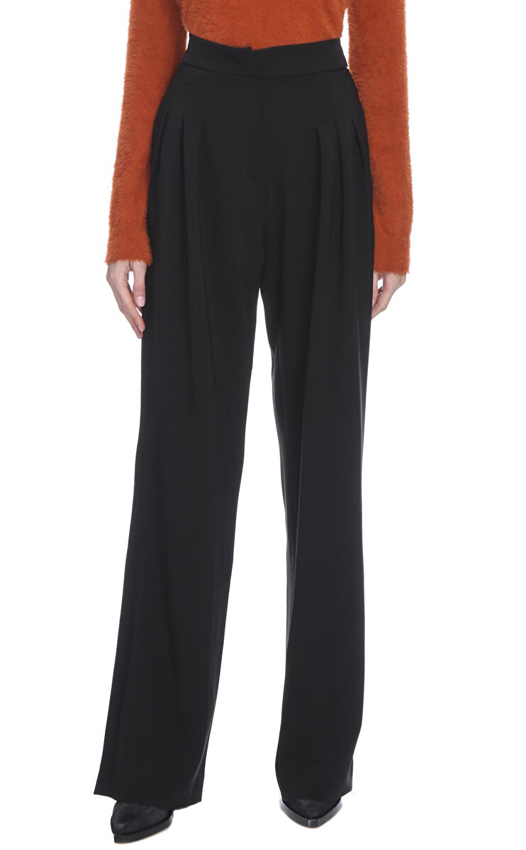 Yüksek belli, düz paçalı, cepli, düz desenli, siyah Akep pantolon