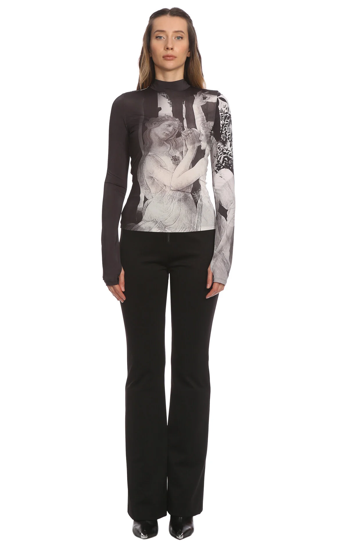 Alice & Olivia Gri Desenli Uzun Kol Dik Yaka Bluz