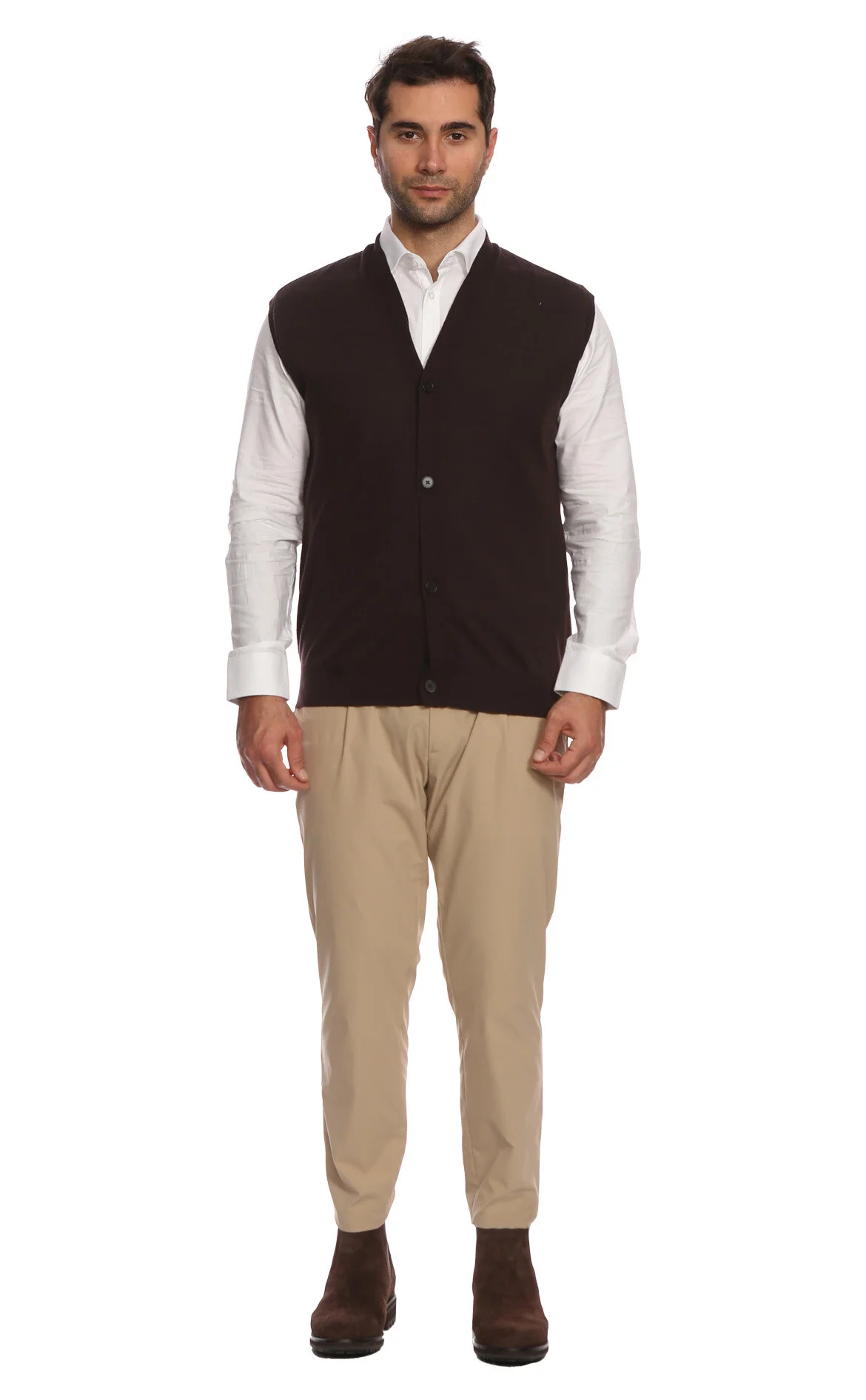 AT.P.CO Kahverengi Sıfır Kol V Yaka Yün Yelek