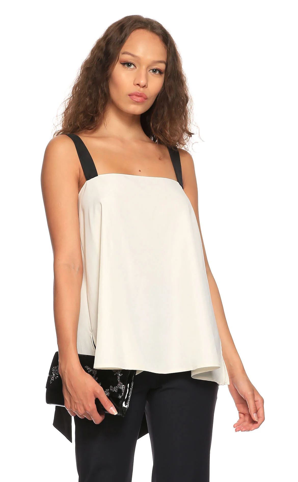 Bande Noir Çok Renkli Kolsuz Kare Yaka Bluz