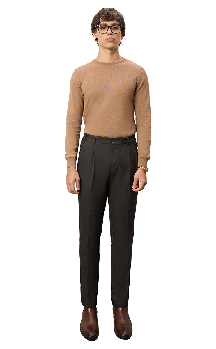 Bisiklet yakalı, uzun kollu, düz desenli, camel Batts triko kazak