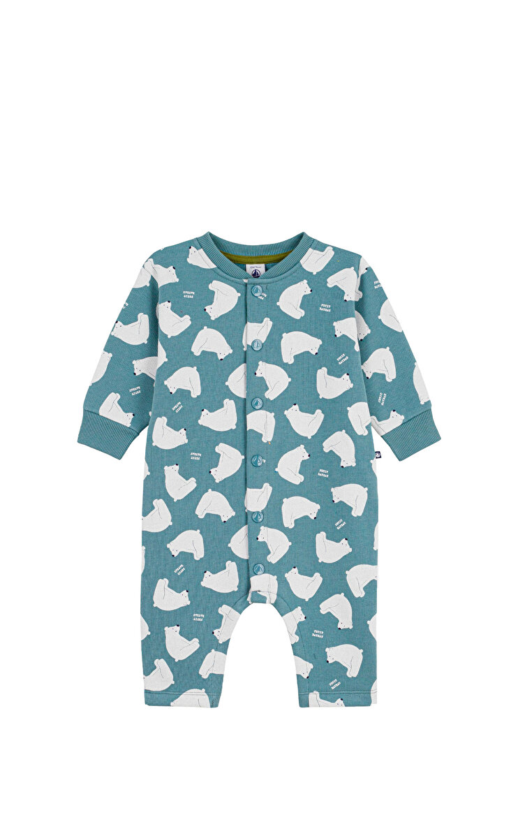 Petit Bateau Beyaz Ayı Baskılı Pamuklu Uzun Bebek Tulum