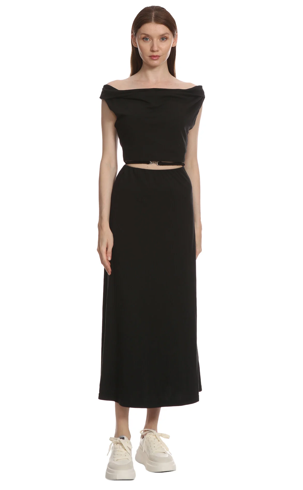 Cedelar Siyah Askılı Asimetrik Yaka Midi Boy Elbise