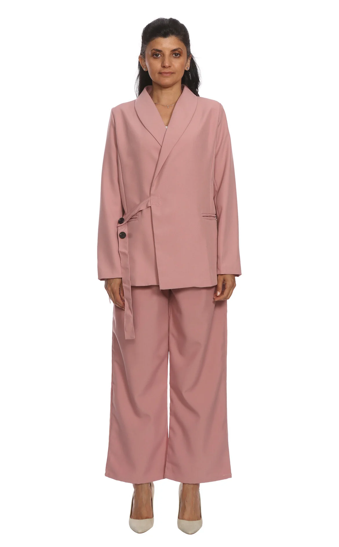 3. Pembe Uzun Kol Kruvaze Yaka Kadın Takım