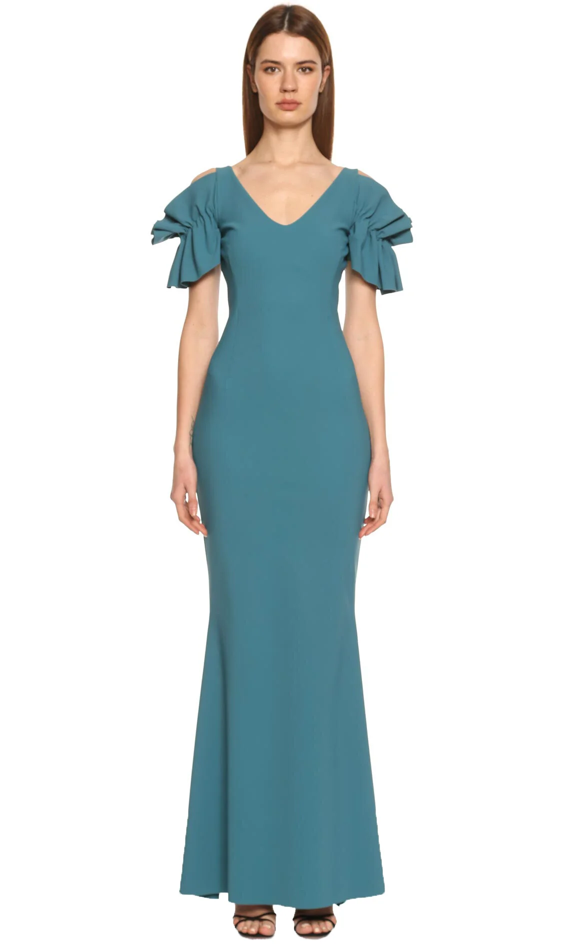 Chiara Boni Mavi Kısa Kol V Yaka Maksi Gece Elbisesi