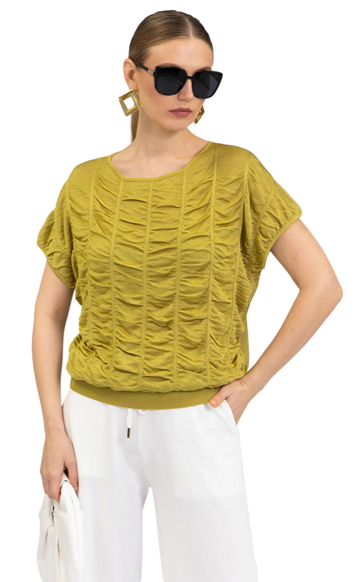 3. Yeşil Kısa Kollu Oval Yaka Kadın Kazak