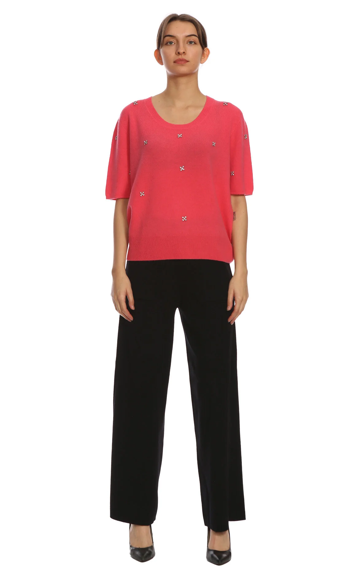 Christina Paris Mercan Rengi Uzun Kol V Yaka Yünlü Kadın Kazak