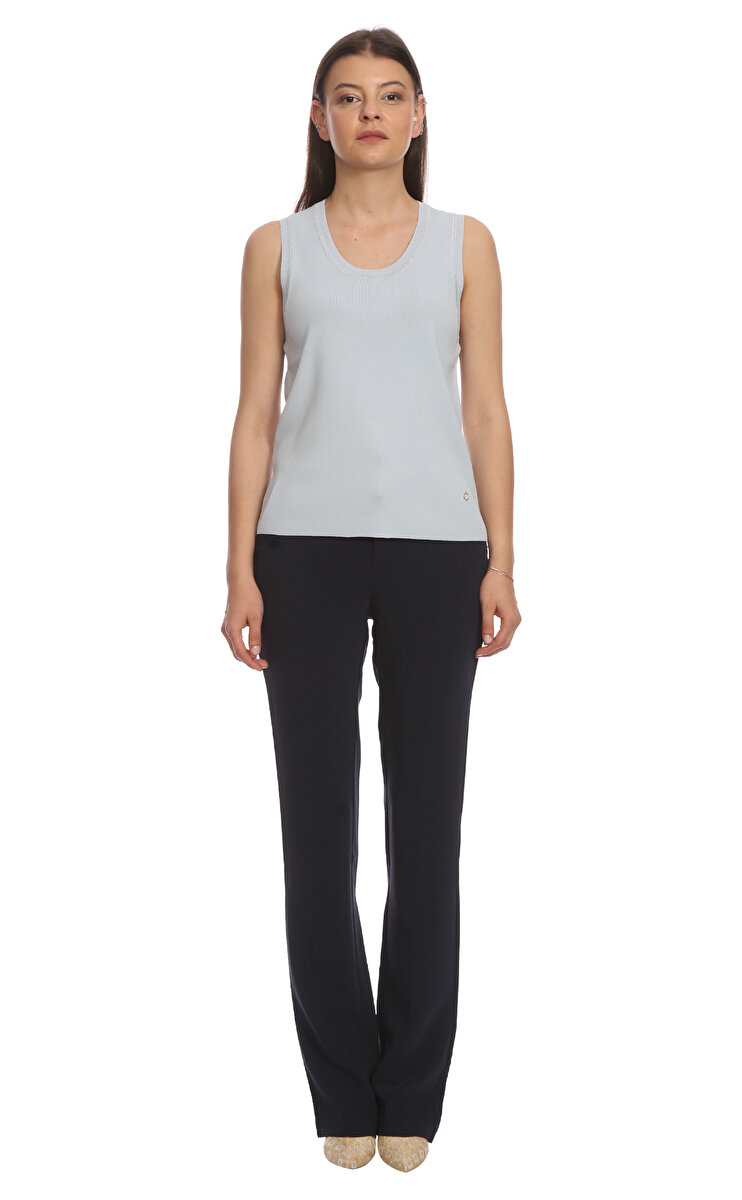 U yakalı, sııfır kollu, düz desenli, mavi Christina Paris crop top