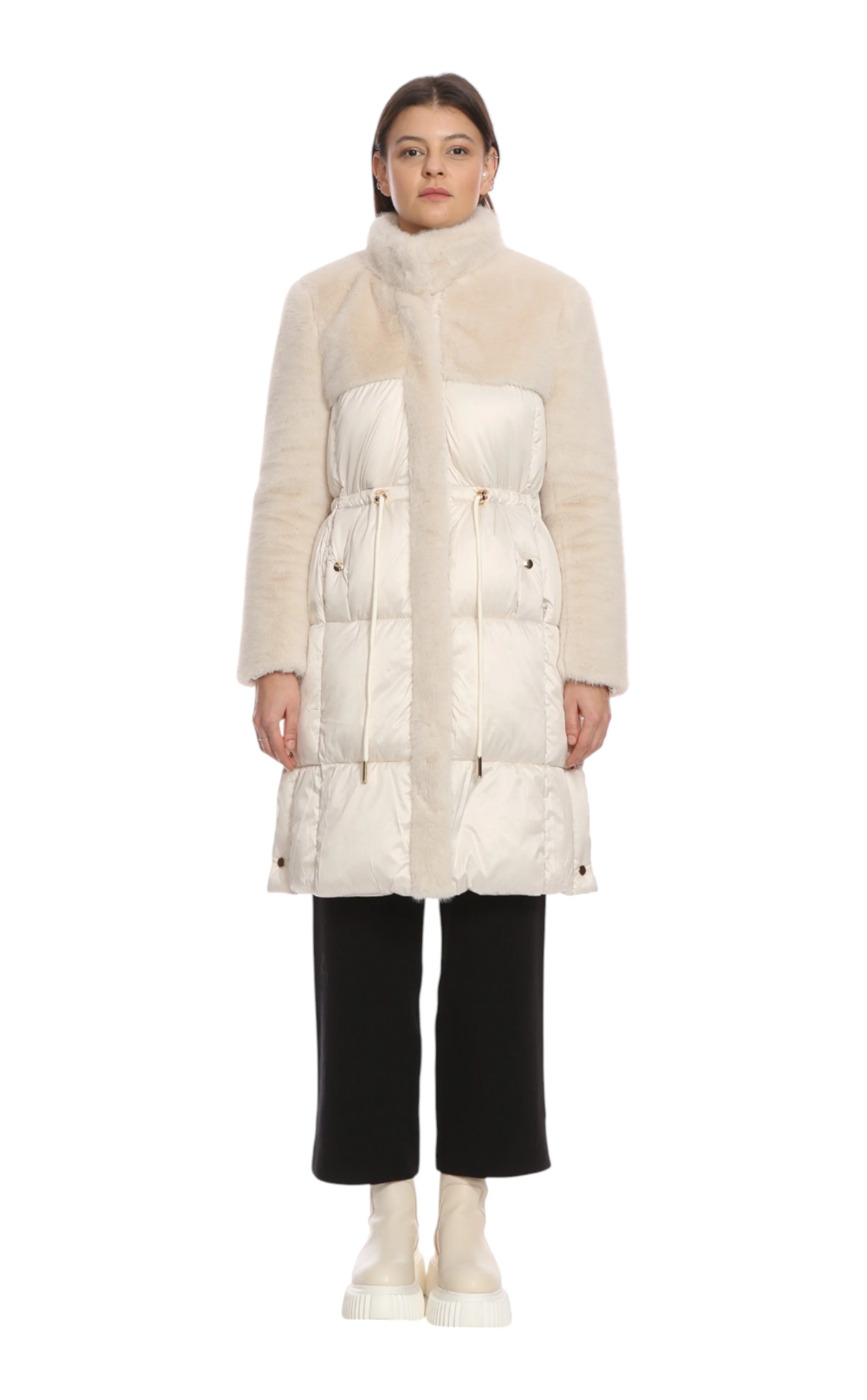Christina Paris Gri Uzun Kol Dik Yaka Mont