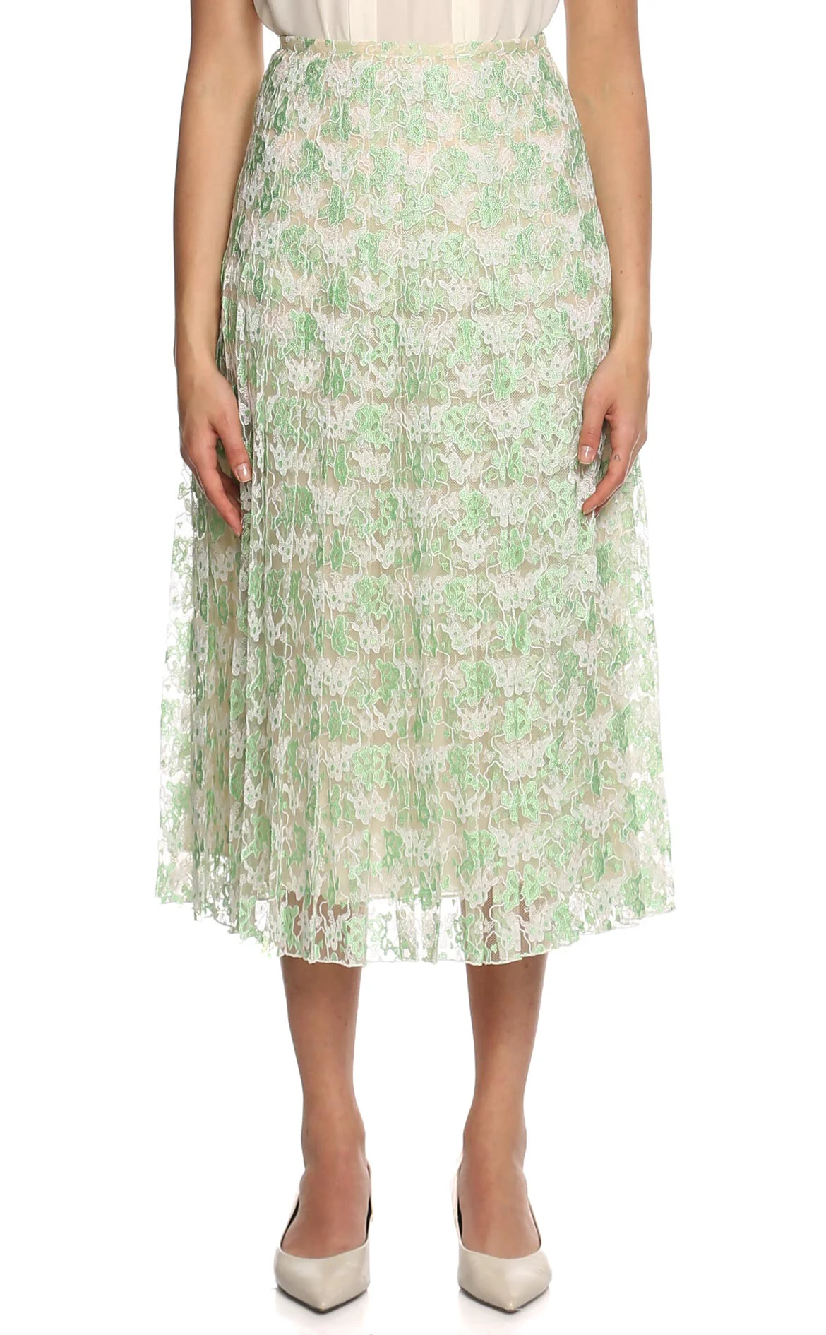 Christopher Kane Yeşil Dantel İşlemeli Midi Etek