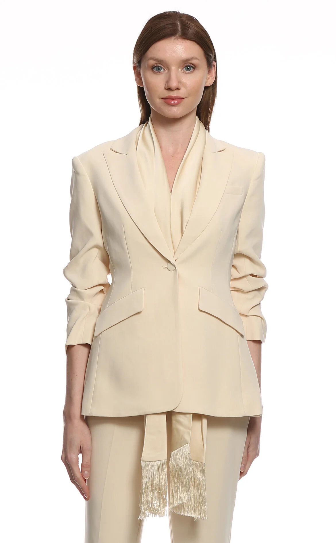 3. Krem Büzgülü Kollu Blazer