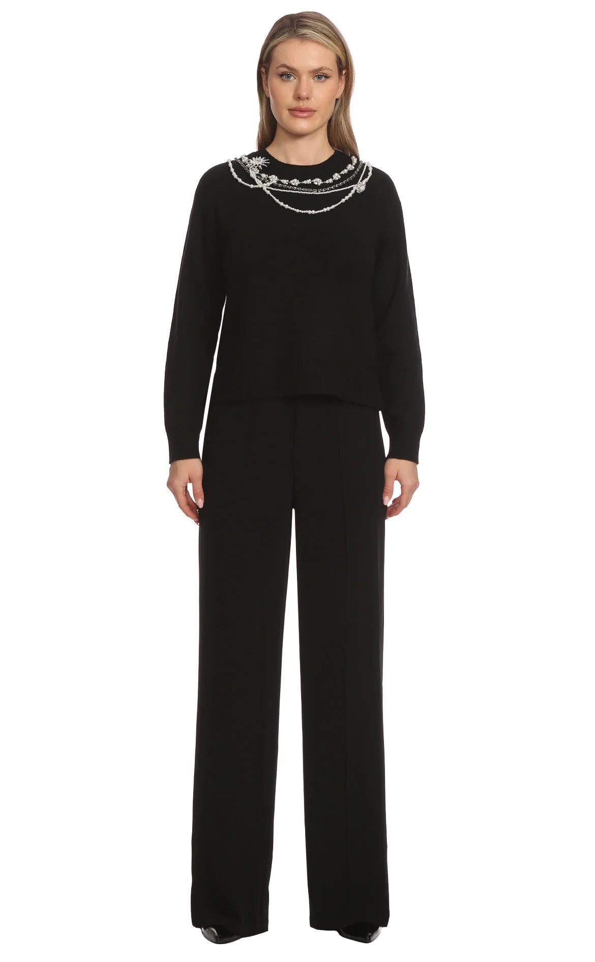 3. Siyah Taş İşlemeli Uzun Kol Bisiklet Yaka Kadın Kazak