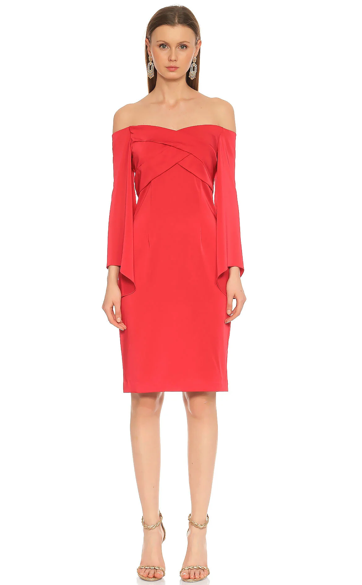 David Meister Kırmızı Uzun Kol Kayık Yaka Mini Boy Elbise