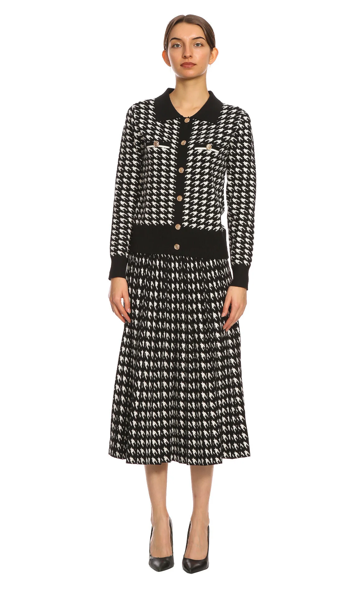 3. Renkli Kazayağı Uzun Kollu Ceket