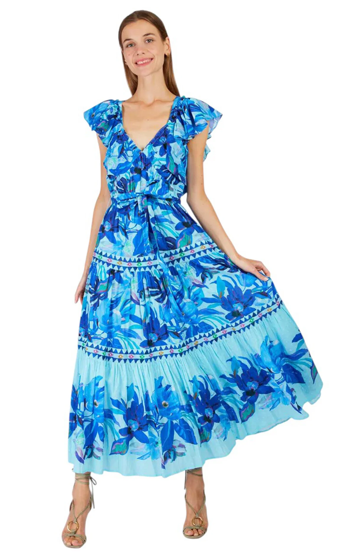 Derhy Çok Renkli Karışık Desenli Kap Kol V Yaka Midi Boy Elbise