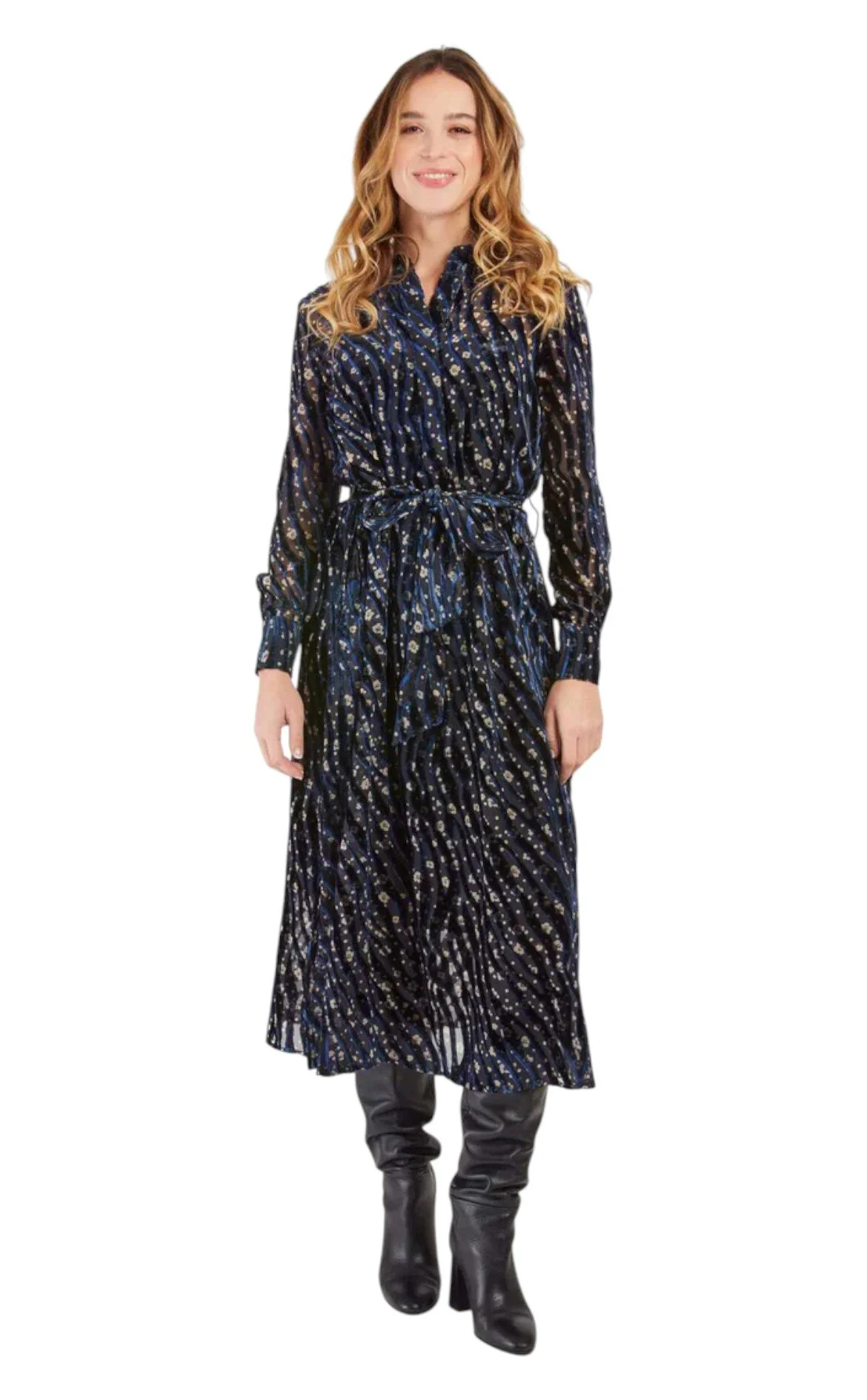 Derhy Siyah Karışık Desenli Uzun Kol Dik Yaka Midi Boy Elbise