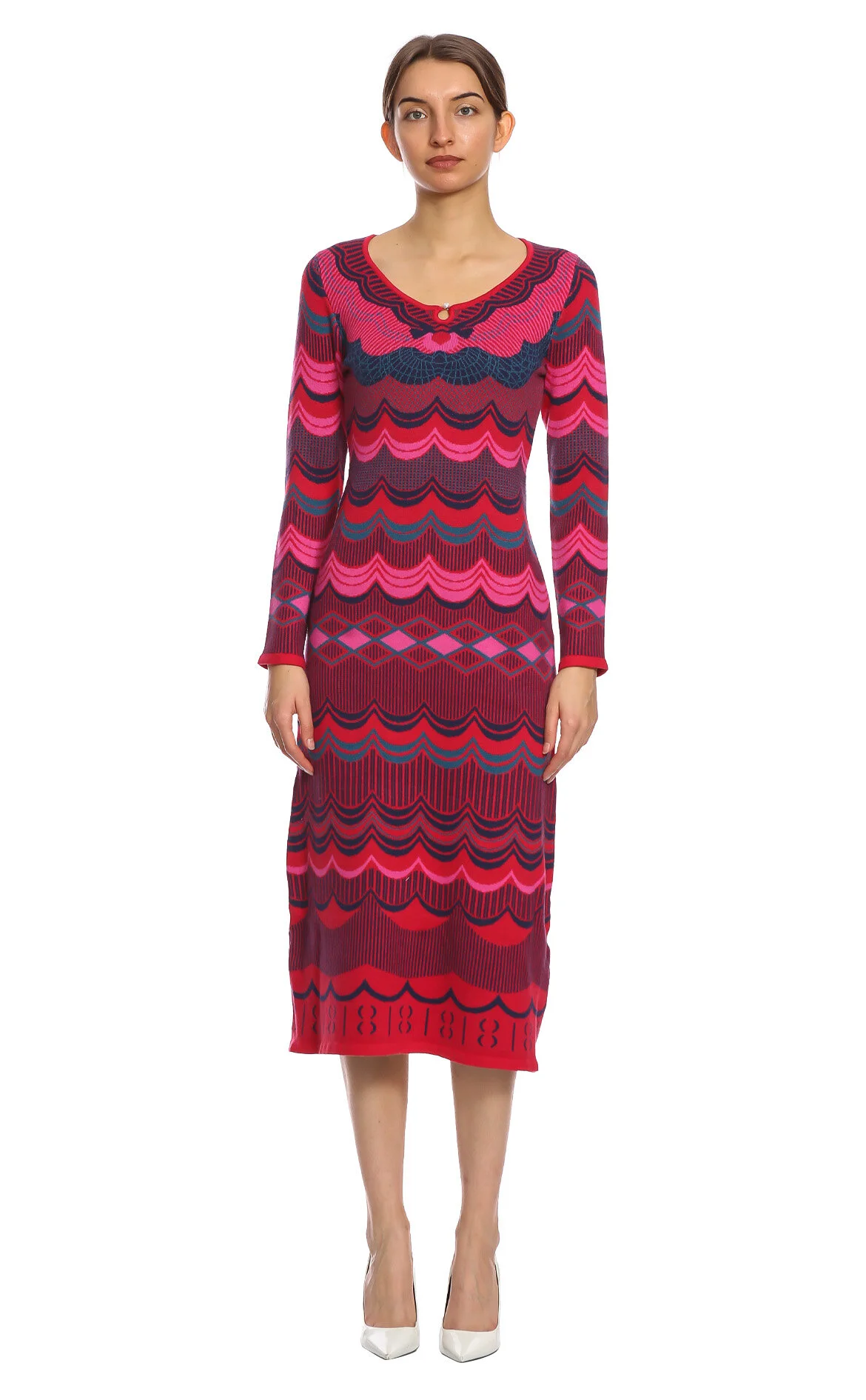 Derhy Çok Renkli Karışık Desenli Uzun Kol Yuvarlak Yaka Maksi Boy Elbise