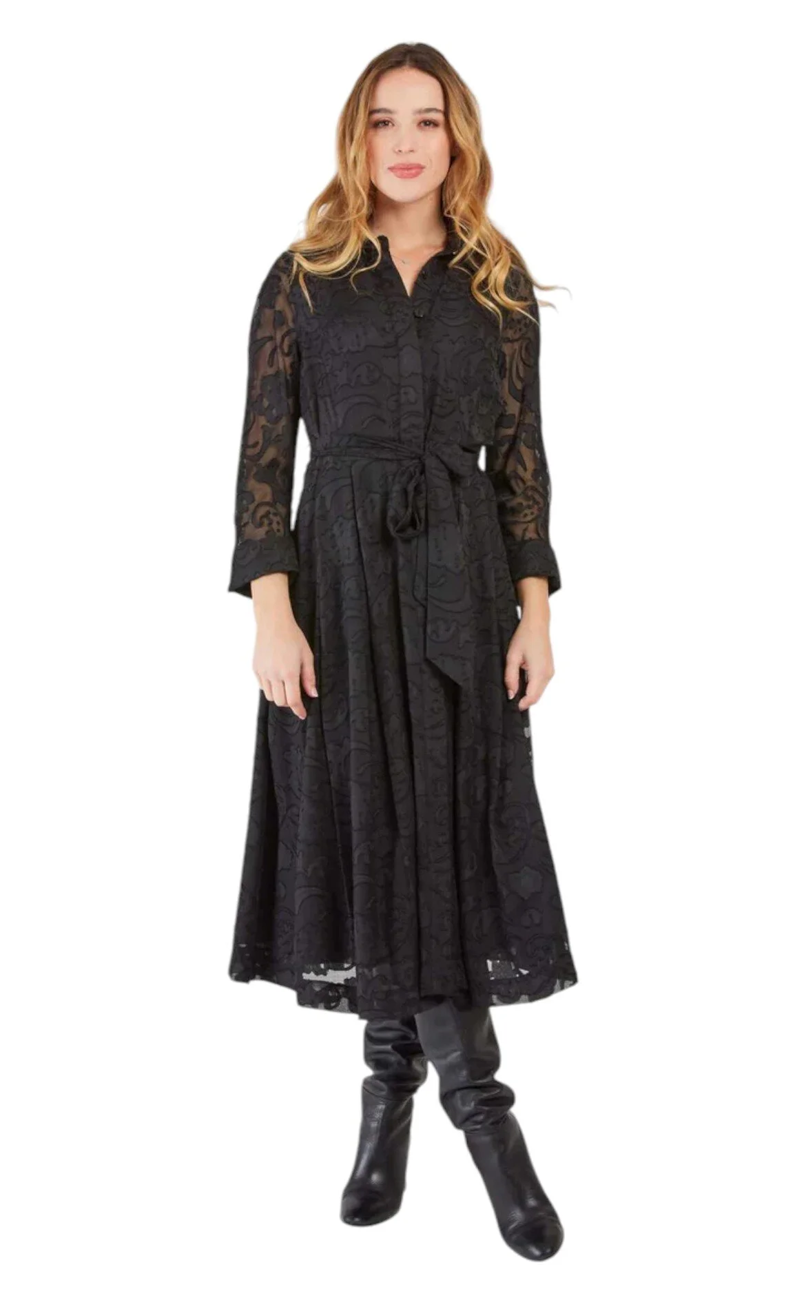 Derhy Siyah Dantelli Uzun Kol Gömlek Yaka Midi Boy Elbise