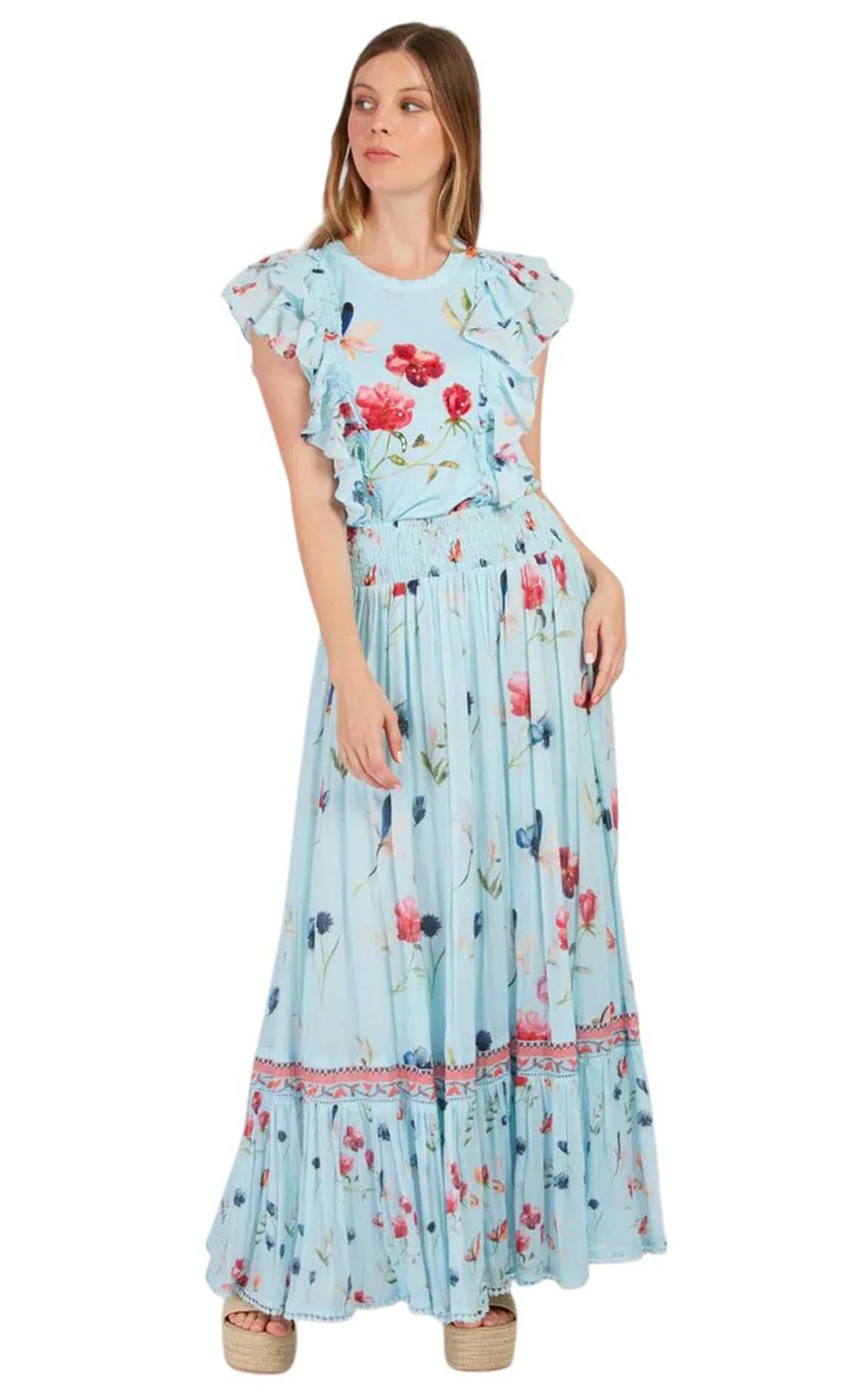 Derhy Çok Renkli Çiçek Desenli Normal Bel Midi Etek