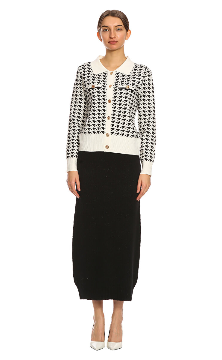 Gömlek yaka, uzun kollu, kazayağı desenli, cep görünüm detaylı renkli Dery Ceket