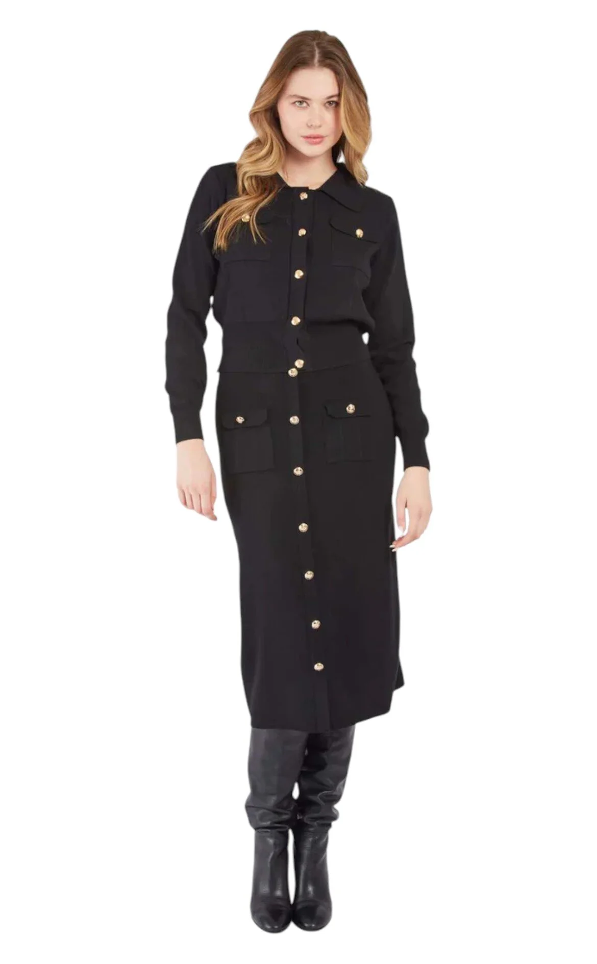 Derhy Siyah Uzun Kol Oval Yaka Midi Boy Kadın Bluz ve Etek Seti
