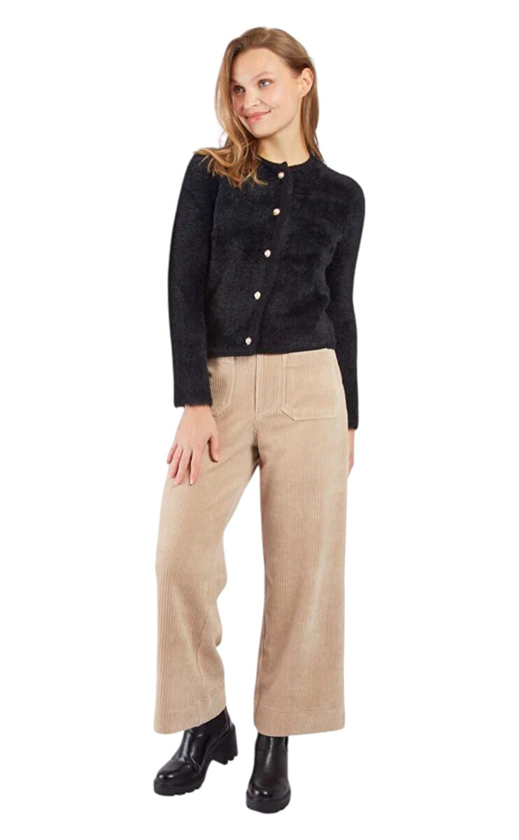 Oval yakalı, uzun kollu, düz desenli, siyah Derhy hırka
