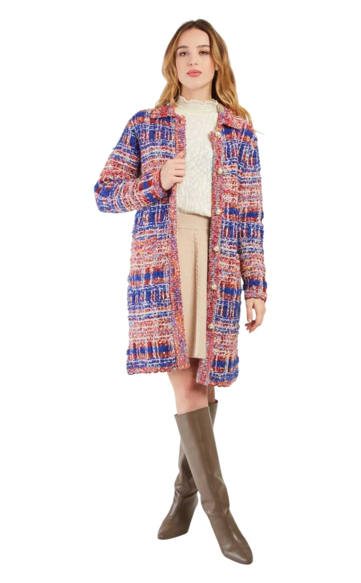 Derhy Mavi Karma Desenli Uzun Kollu Uzun Ceket