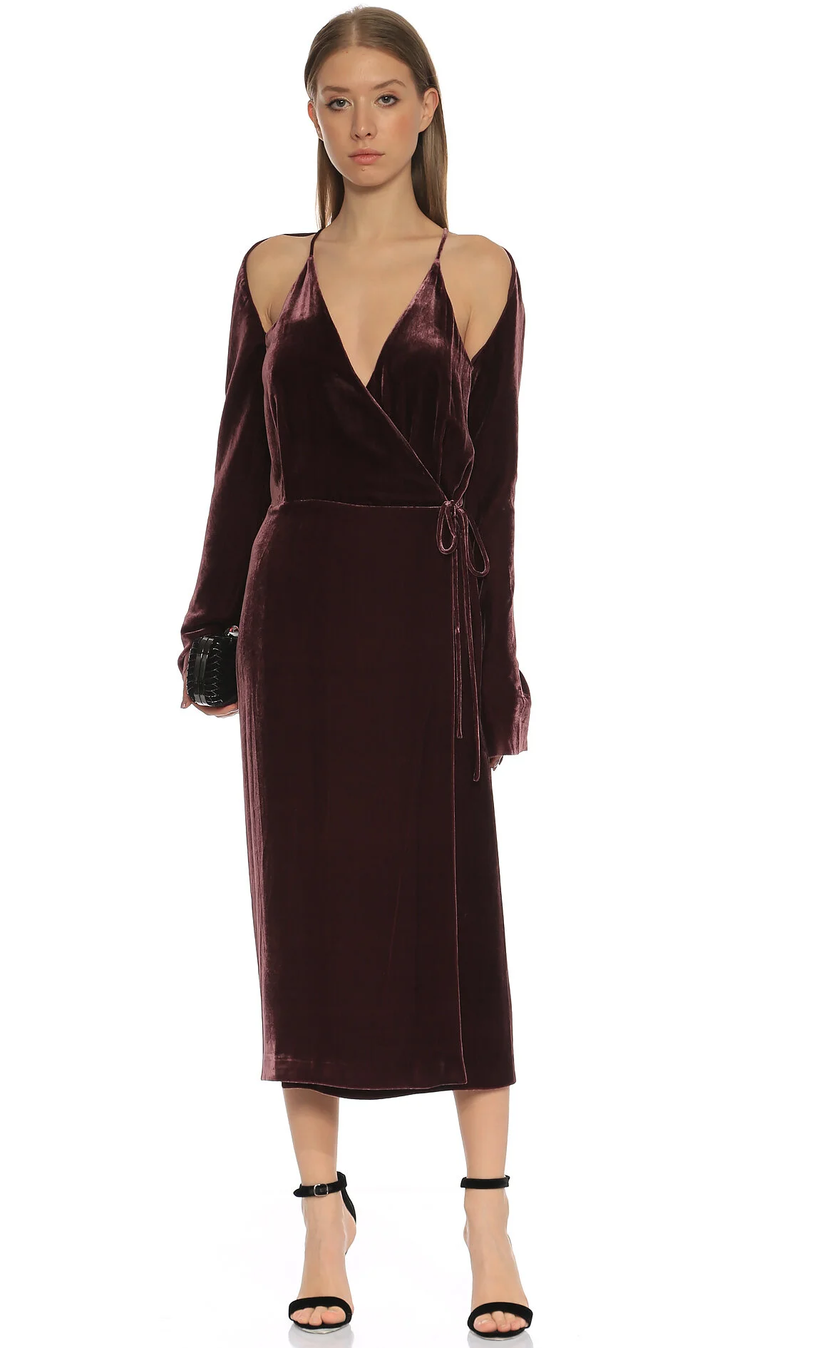 Dion Lee Bordo Uzun Kol Kruvaze Yaka Midi Boy Elbise