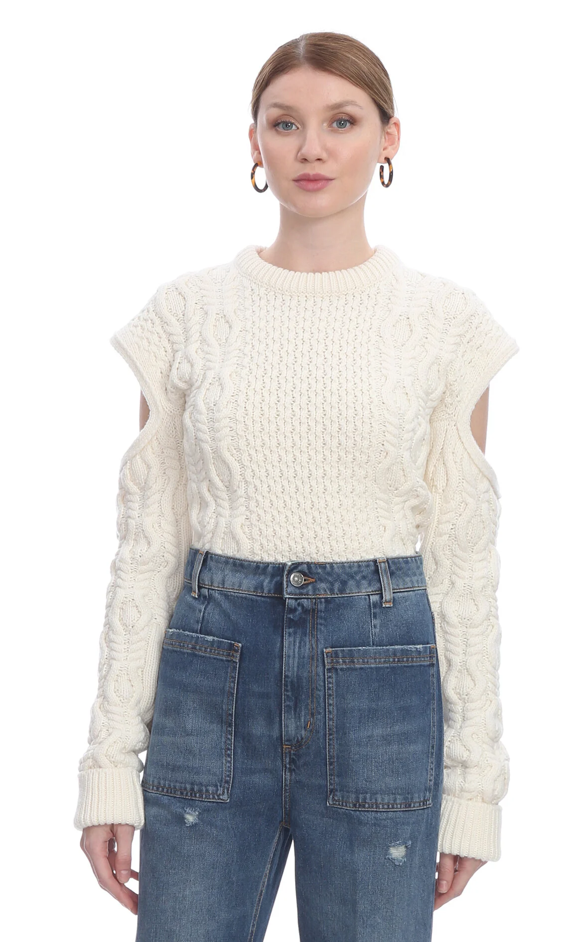 Dondup Krem Rengi Saç Örgülü Omuz Dekolteli Uzun Kol Bisiklet Yaka Kadın Kazak