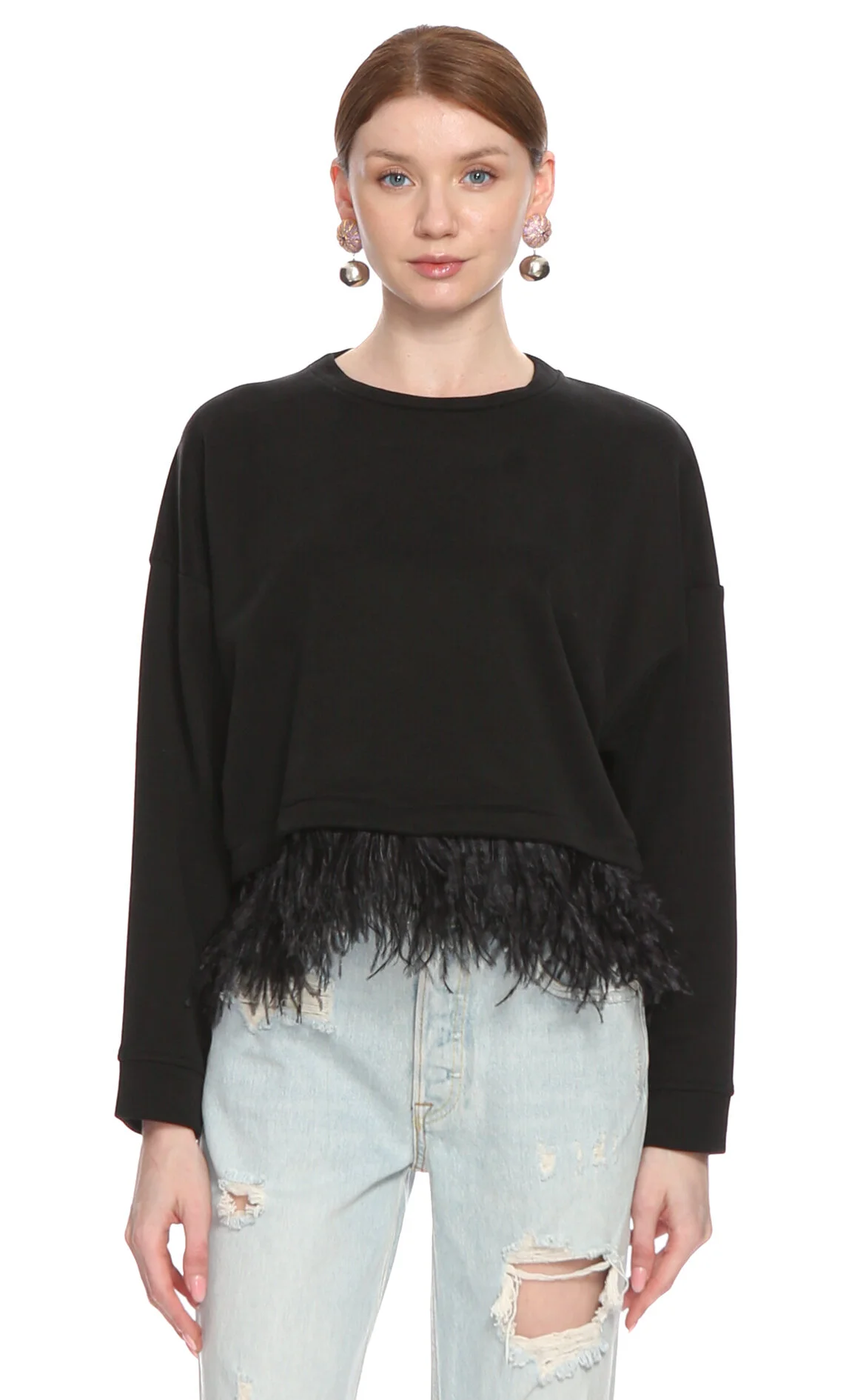 3. Siyah Tüy Detaylı Uzun Kol Sweatshirt
