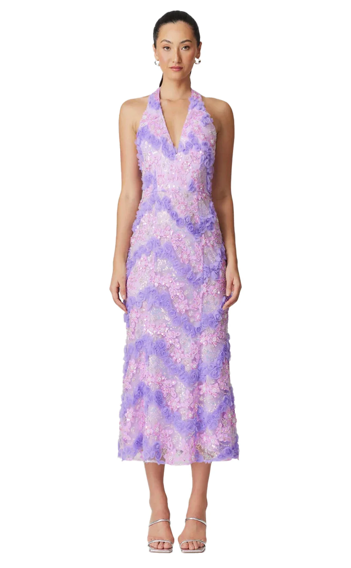 Elliatt Çok Renkli Karışık Desenli Askılı V Yaka Midi Boy Elbise