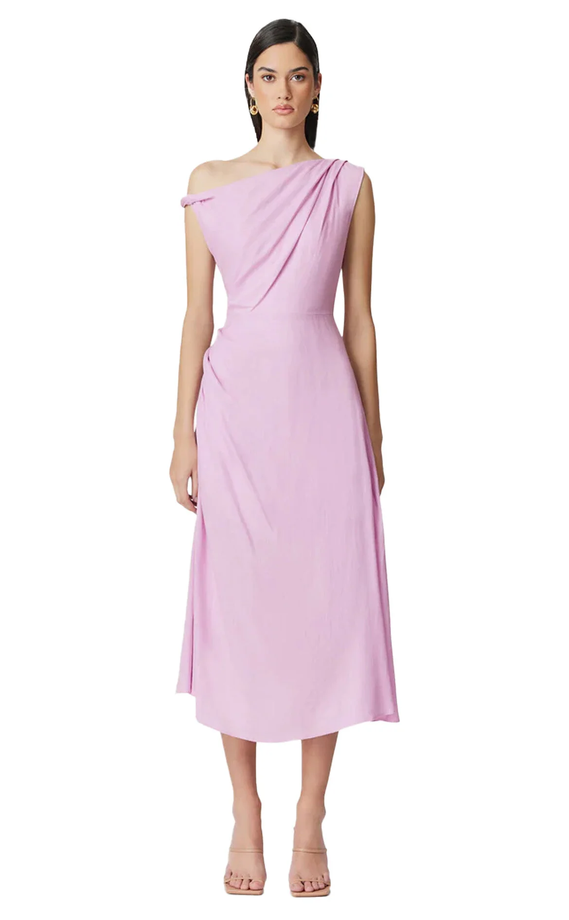 Elliatt Lila Rengi Askılı Asimetrik Yaka Midi Boy Elbise