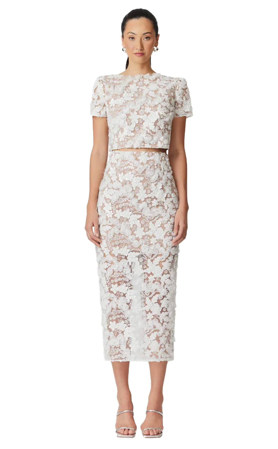 Elliatt Beyaz Dantel İşlemeli Normal Bel Midi Etek