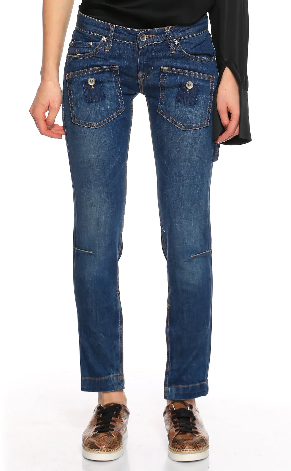 Fornarina Jeans Mavi Düşük Belli Fermuarlı Jean Pantolon