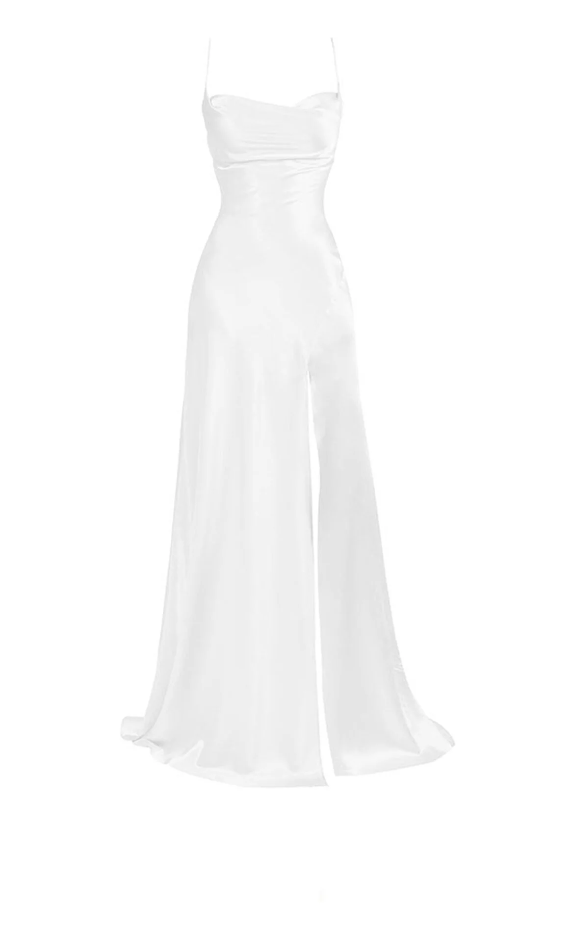 Gigiis Beyaz Askılı Kalp Yaka Maksi Boy Elbise