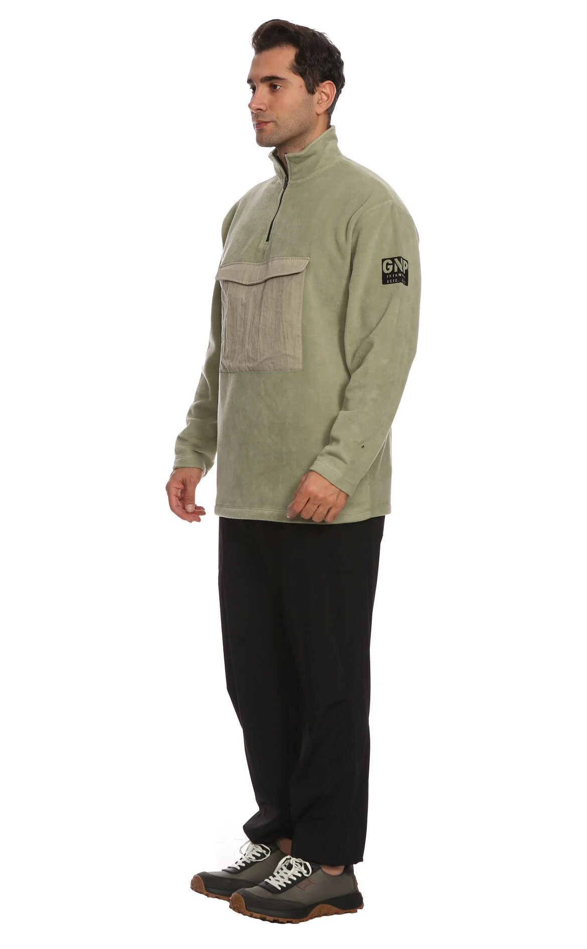 Gnp Yeşil Uzun Kol Fermuarlı Dik Yaka Sweatshirt