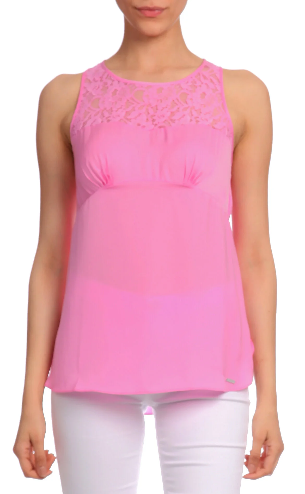 Guess Pembe Dantel İşlemeli Kolsuz Bisiklet Yaka Bluz