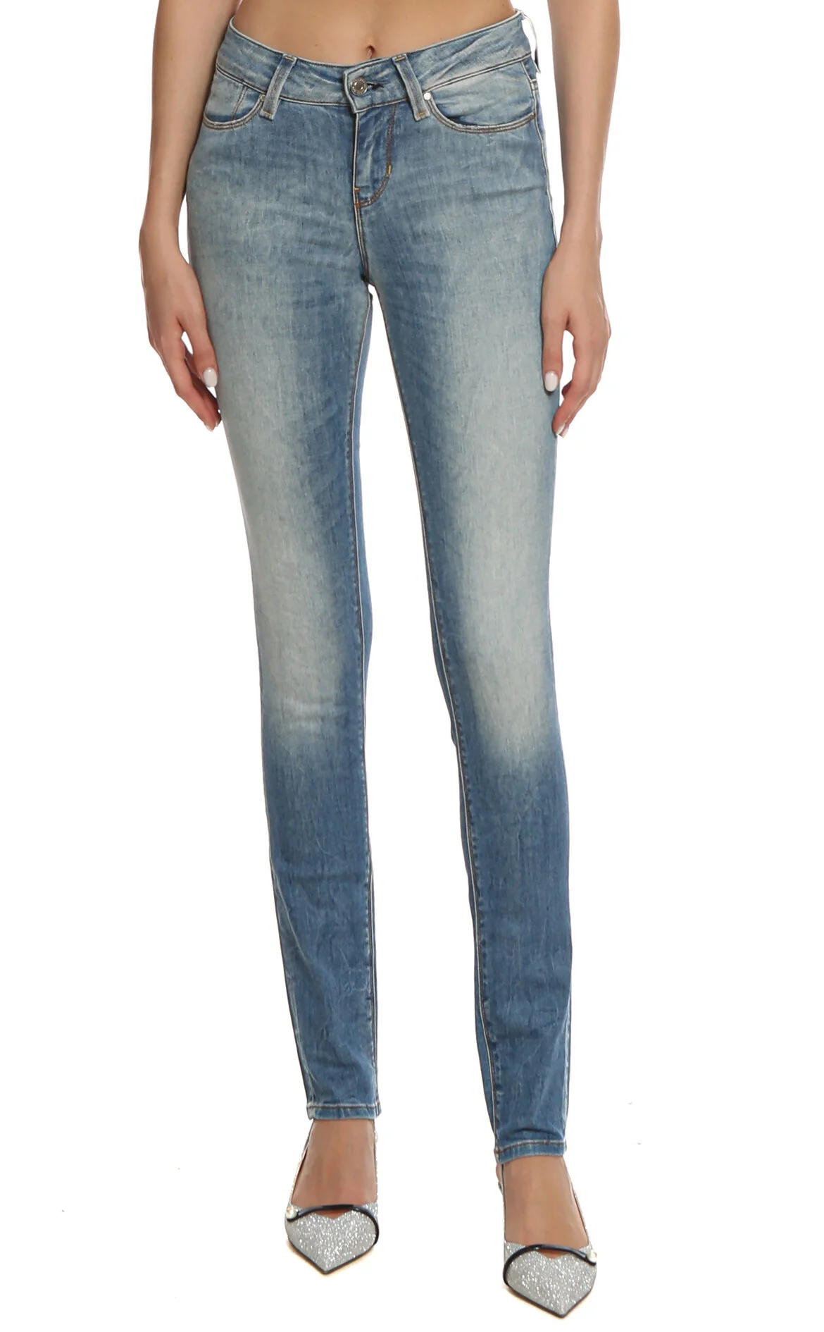 Guess Denim Taşlamalı Dar Paça Pamuklu Pantolon