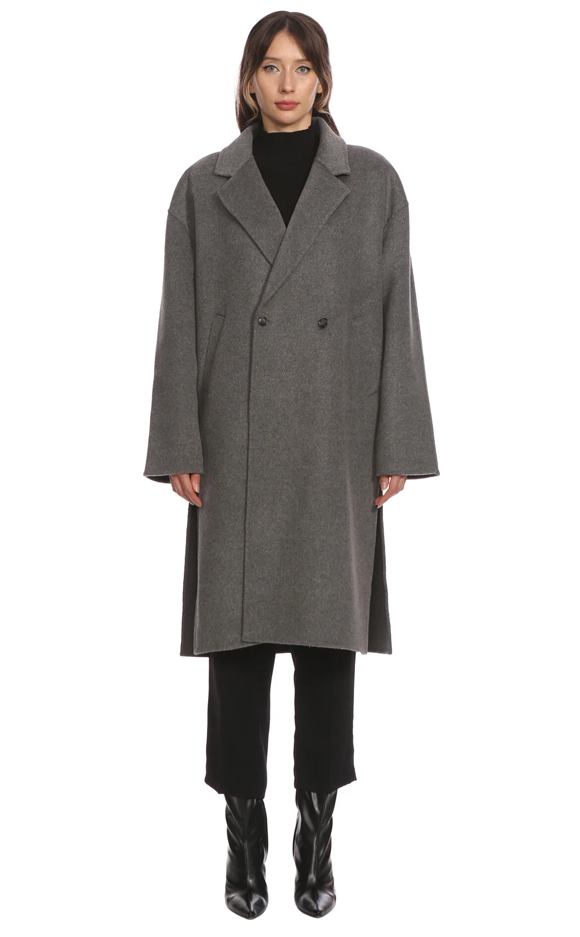 5. Gri Uzun Kollu Yünlü Kaban