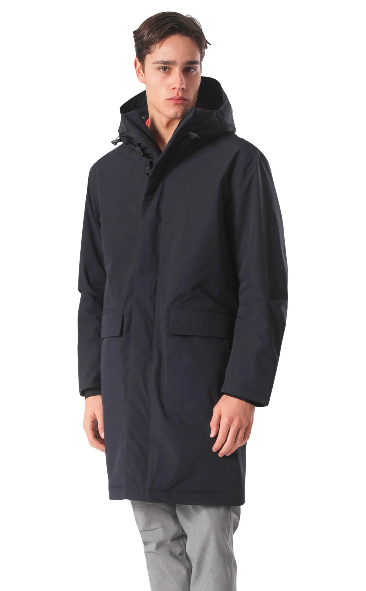 Isaora Lacivert Regular Fit Mikrofiber  Kapüşonlu Kaban