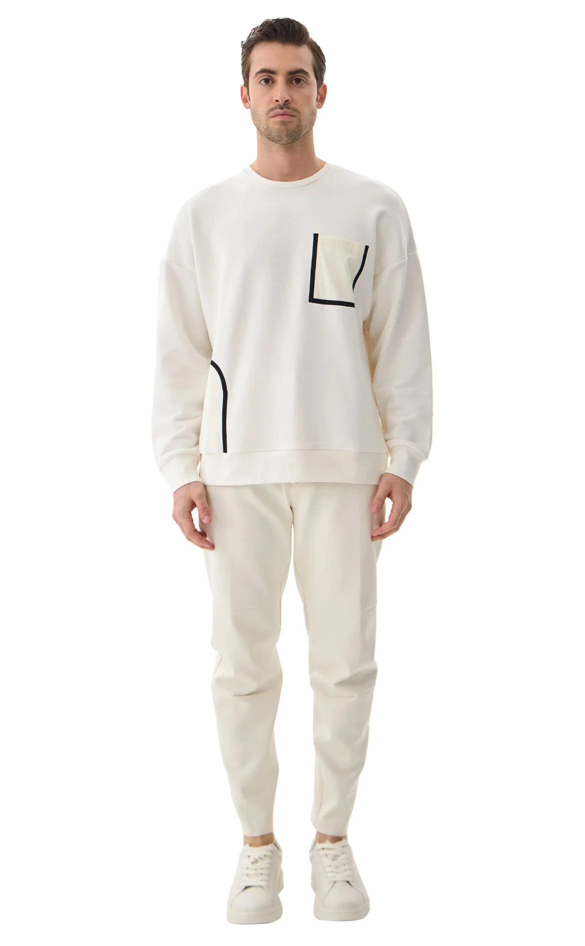 5. Beyaz Cep Detaylı Uzun Kol Bisiklet Yaka Sweatshirt