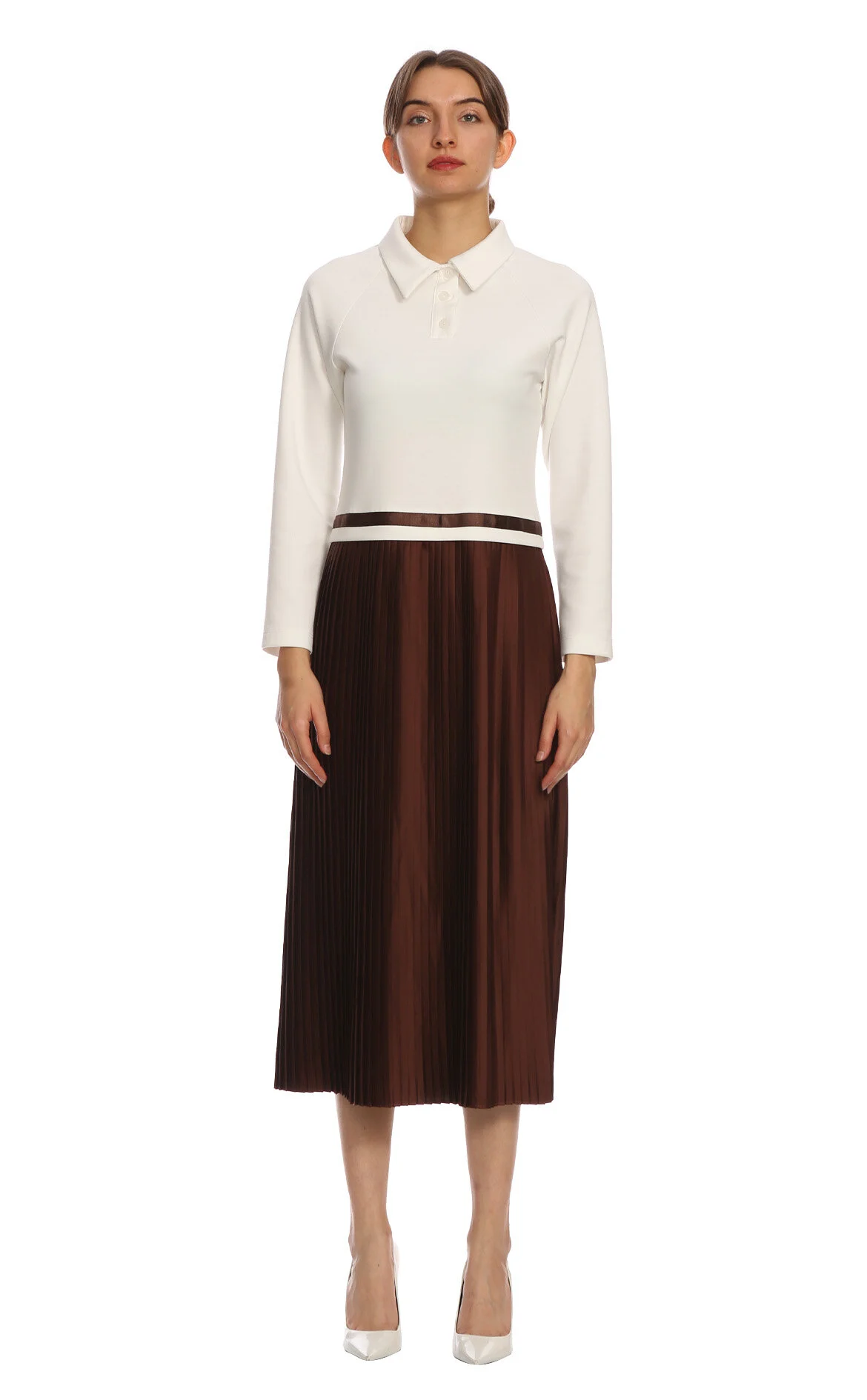 J Arrivee Çok Renkli Uzun Kol Gömlek Yaka Midi Boy Elbise