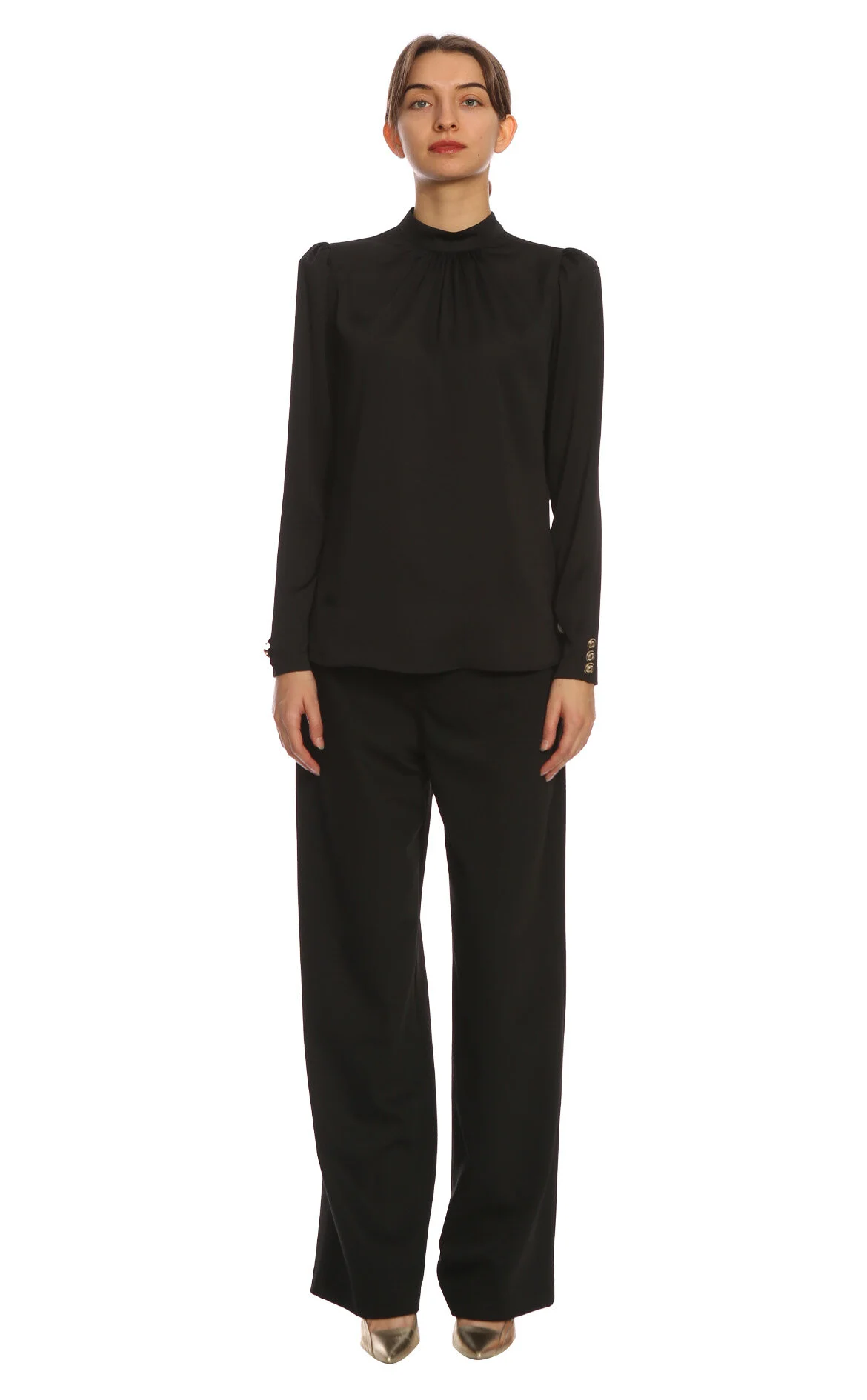 5. Siyah Uzun Kol Dik Yaka Bluz