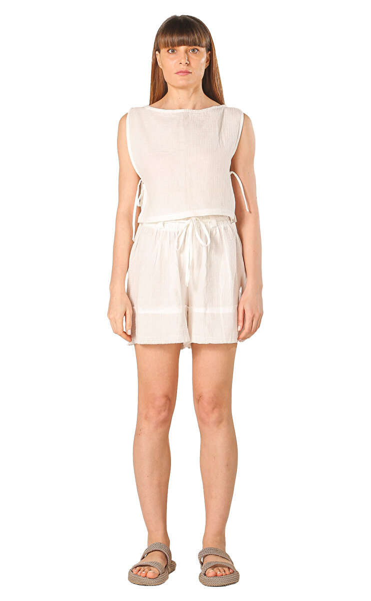 Düz yakalı, sıfır kollu, düz desenli, normal belli, beyaz Jessywell takım