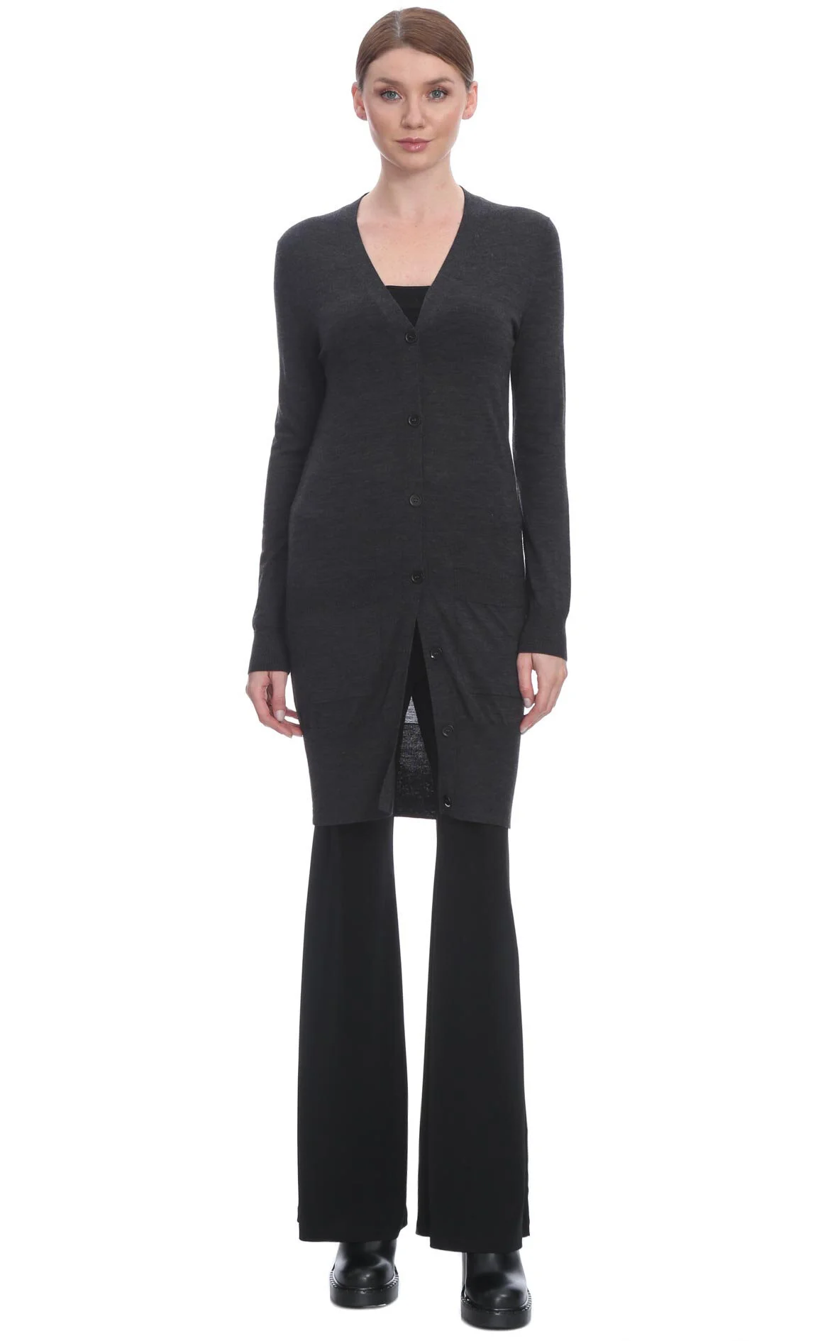 3. Antrasit Uzun Kollu V Yaka Yün Hırka