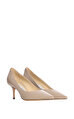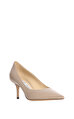 Sivri burunlu, düz desenli, orta ökçeli, gül kurusu Jimmy Choo topuklu ayakkabı